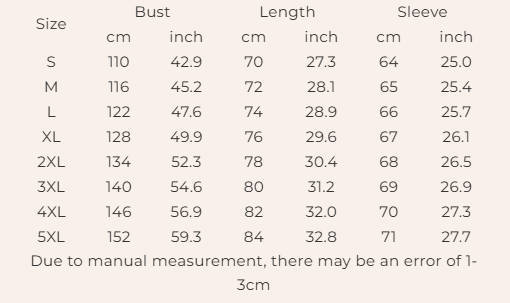 Not: 1. Asya bedenleri, Avrupa ve Amerika bedenlerinden 1-2 beden daha küçüktür. Bedeniniz iki beden arasındaysa, daha büyük olanı seçin. Manuel ölçüm nedeniyle 2-3 cm farklılık olabilir. 2. Lütfen ürünü satın almadan önce beden tablosunu dikkatlice kontrol edin, beden seçimi konusunda emin değilseniz lütfen müşteri hizmetlerimizle iletişime geçin. 3. Bildiğiniz gibi, farklı bilgisayarlar renkleri farklı şekilde gösterir, gerçek ürünün rengi aşağıdaki görsellerden biraz farklı olabilir.